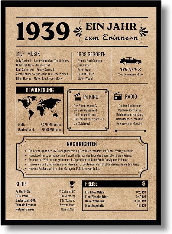 EQUIK PRODUCTS Geburtstagskarte 1939 Geschenk 84 Geburtstag Dekoration Geburtstag 1939