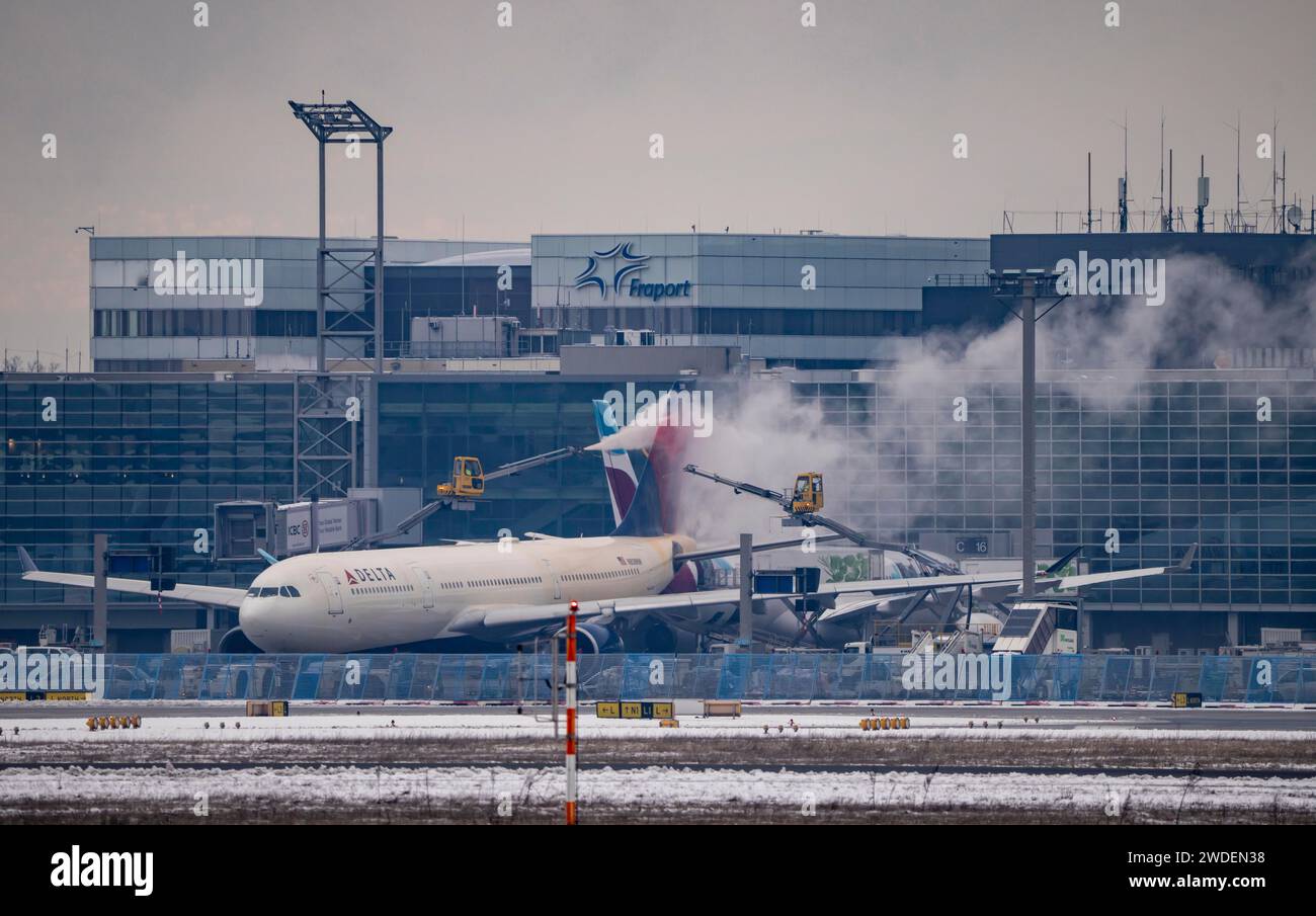 Winter at Frankfurt Main Airport, FRA, Delta aircraft being deiced at the terminal, Hesse