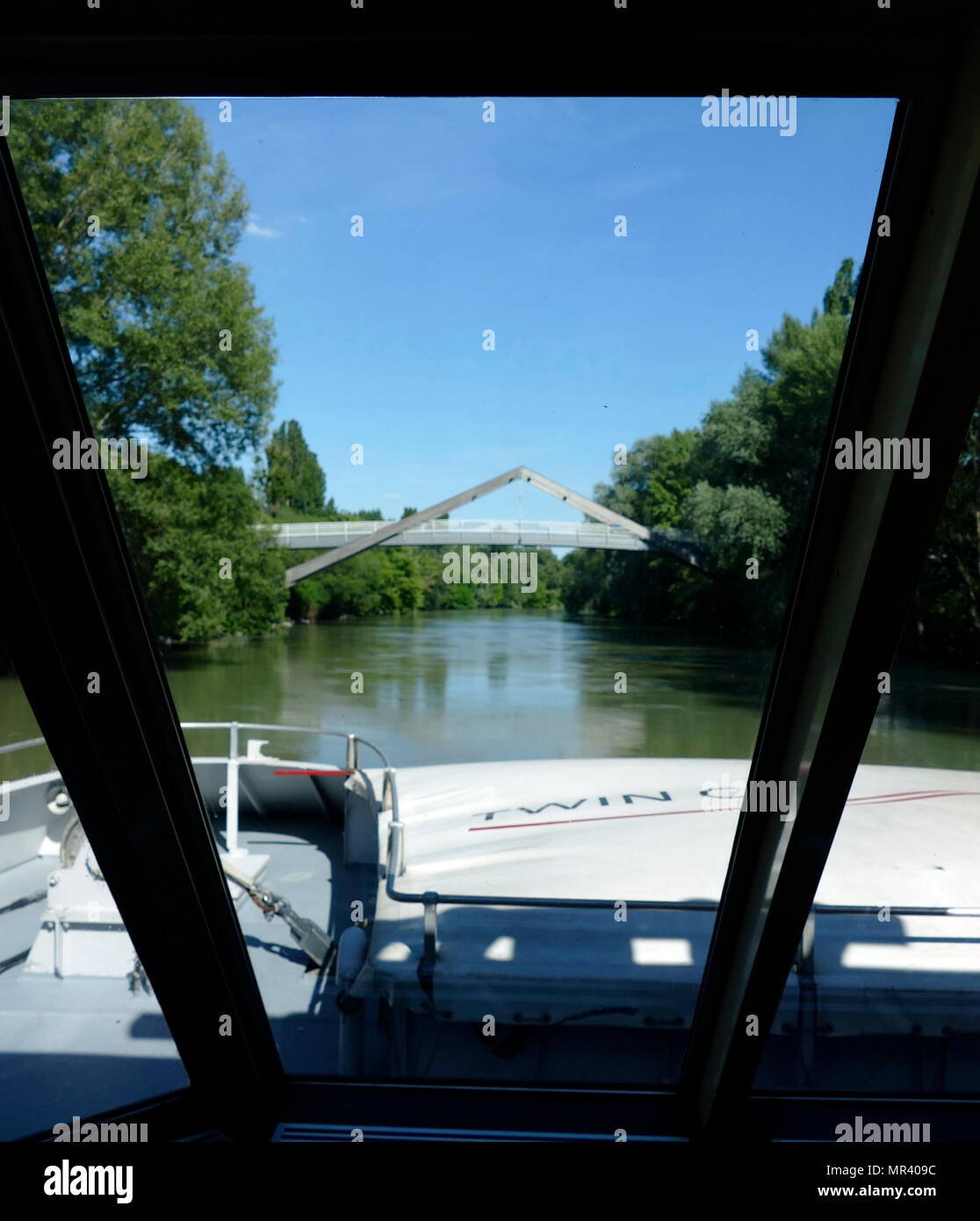 Foto von einer Brücke über die Donau in Wien, Österreich. Die Donau ist Europas längste Rive