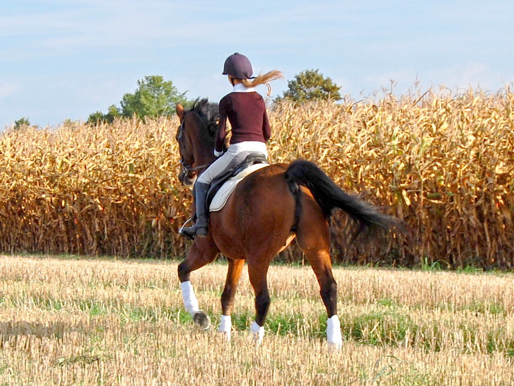 1. Langsame Eingewöhnung. Ausritte machen großen Spaß, sind aber nicht ganz ungefährlich, denn im Gelände erwarten dich und dein Pferd jede Menge Überraschungen, vor denen ihr auf dem Reitplatz oder in der Halle geschützt seid. Das kann ein Hase sein, der plötzlich aus dem Gebüsch springt, ein lauter Traktor auf dem Feld oder auffliegende Vögel.