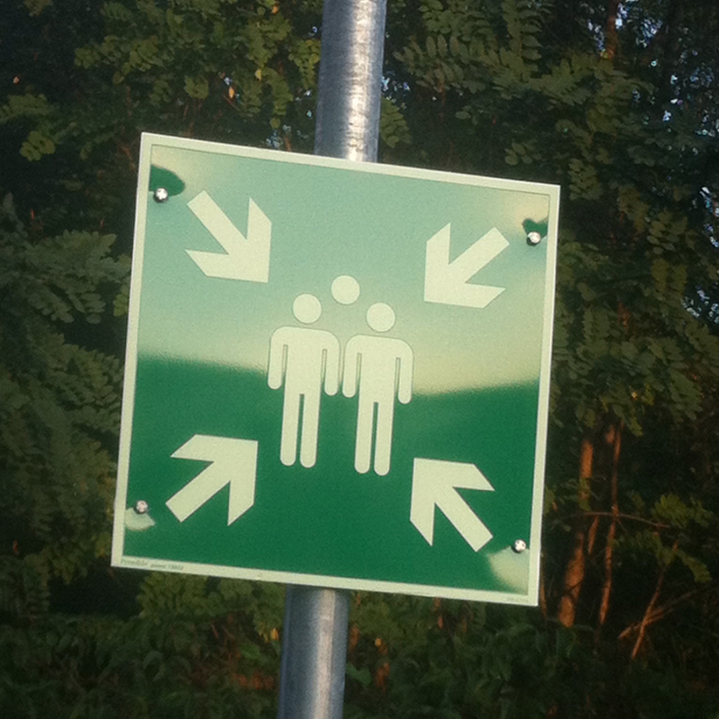 Grünes Schild mit Beschriftung Sammelpunkt Stock Photo Alamy