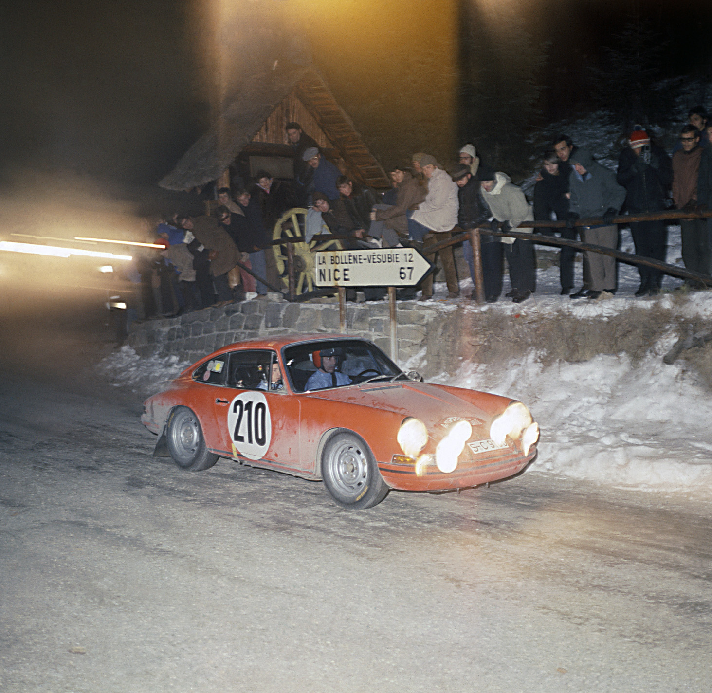 17:27.00 min. Vic Elford fights with everything he and his car can muster and rises to the occasion on the Col de la Couillole. Thirty-seventh Monte Carlo Rally, January 25, 1968. It's January 1968, and 230 teams from all around Europe have set off for the Monte Carlo Rally. As usual, the first dropouts occur on the way to the principality.