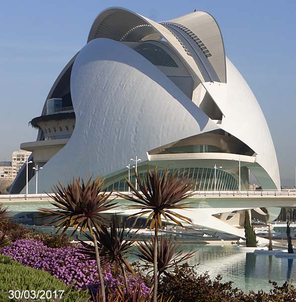 The whole complex is known as the Ciutat de les Arts I les Ciencies or City of Arts and Sciences. Without question the most spectacular element of the complex is the Palau de les Arts Reina Sofia with its soaring roof. Calatrava's website says that, "In recognition of the civic importance of the Opera House, Calatrava gave the building the.