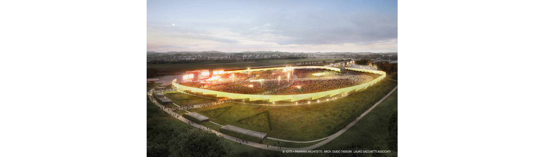 With 100,000 seats, the RCF Arena becomes the largest outdoor arena in Europe. It was created in the area already known as Campovolo and will be ready and operational by September 2020. The venue will allow for a capacity of 10,000 to 100,000 people, with a raked audience floor of 5% to ensure optimal visibility and acoustics.