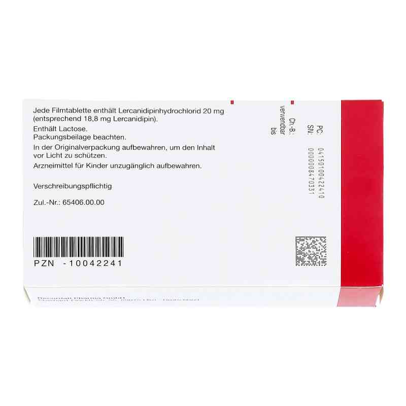 Lercanidipin gibt es üblicherweise als. - Filmtabletten enthaltend 10 mg oder 20 mg Lercanidipinhydrochlorid. Ihr Arzt legt fest, welche Wirkstärke und Darreichungsform für Ihre Behandlung geeignet sind. 1.3.Lercanidipin wird angewendet zur. Behandlung von leichtem bis mittelschwerem, nicht organbedingtem (essenziellem) Bluthochdruck.