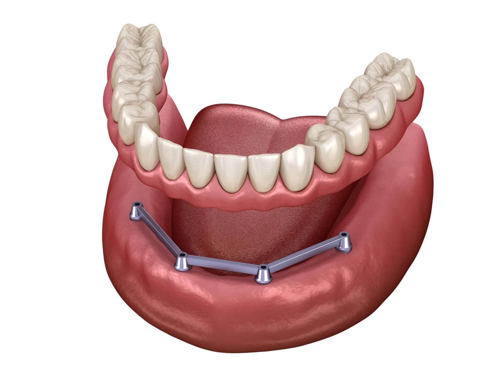 Implantatgetragene Prothesen: Diese sind herausnehmbar und nutzen zwei bis vier Implantate zur Verbesserung von Halt und Stabilität. Sie sind eine Option für Patienten, die nicht alle Zähne mit Implantaten ersetzen können oder wollen. Kosten: Herausnehmbarer Zahnersatz kostet zwischen 500 € und 7.000 € je nachdem welche Art geplant ist.